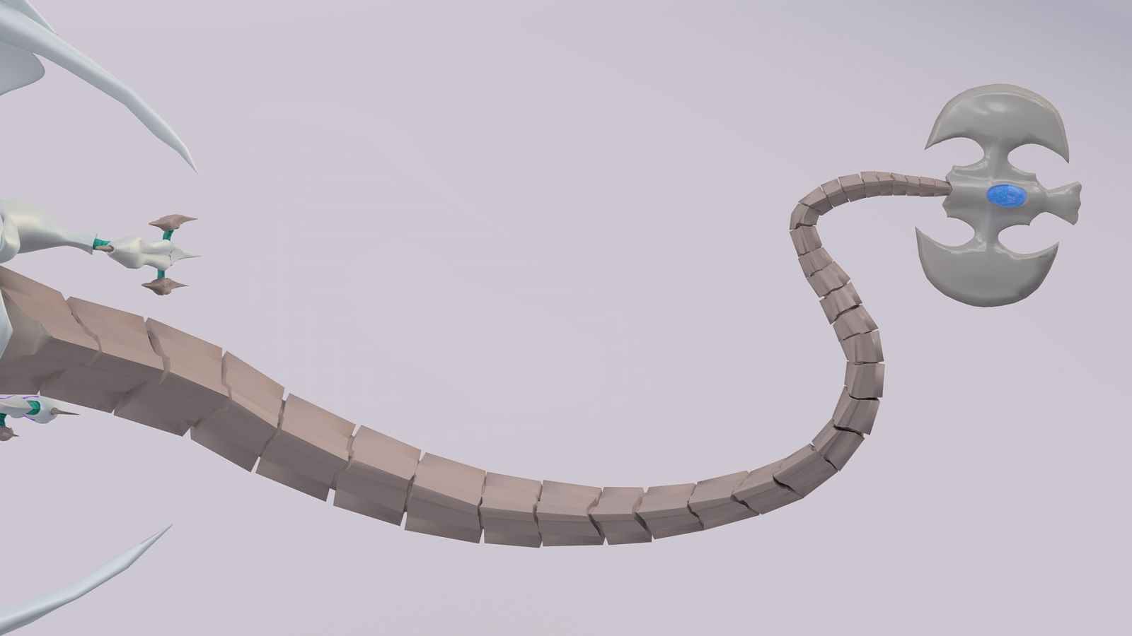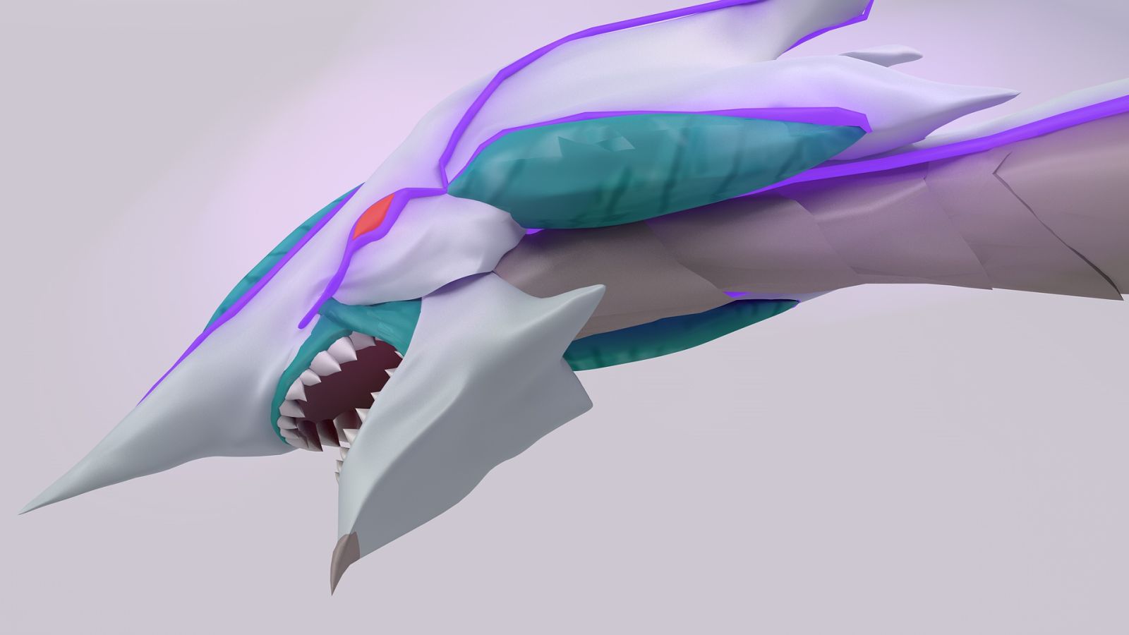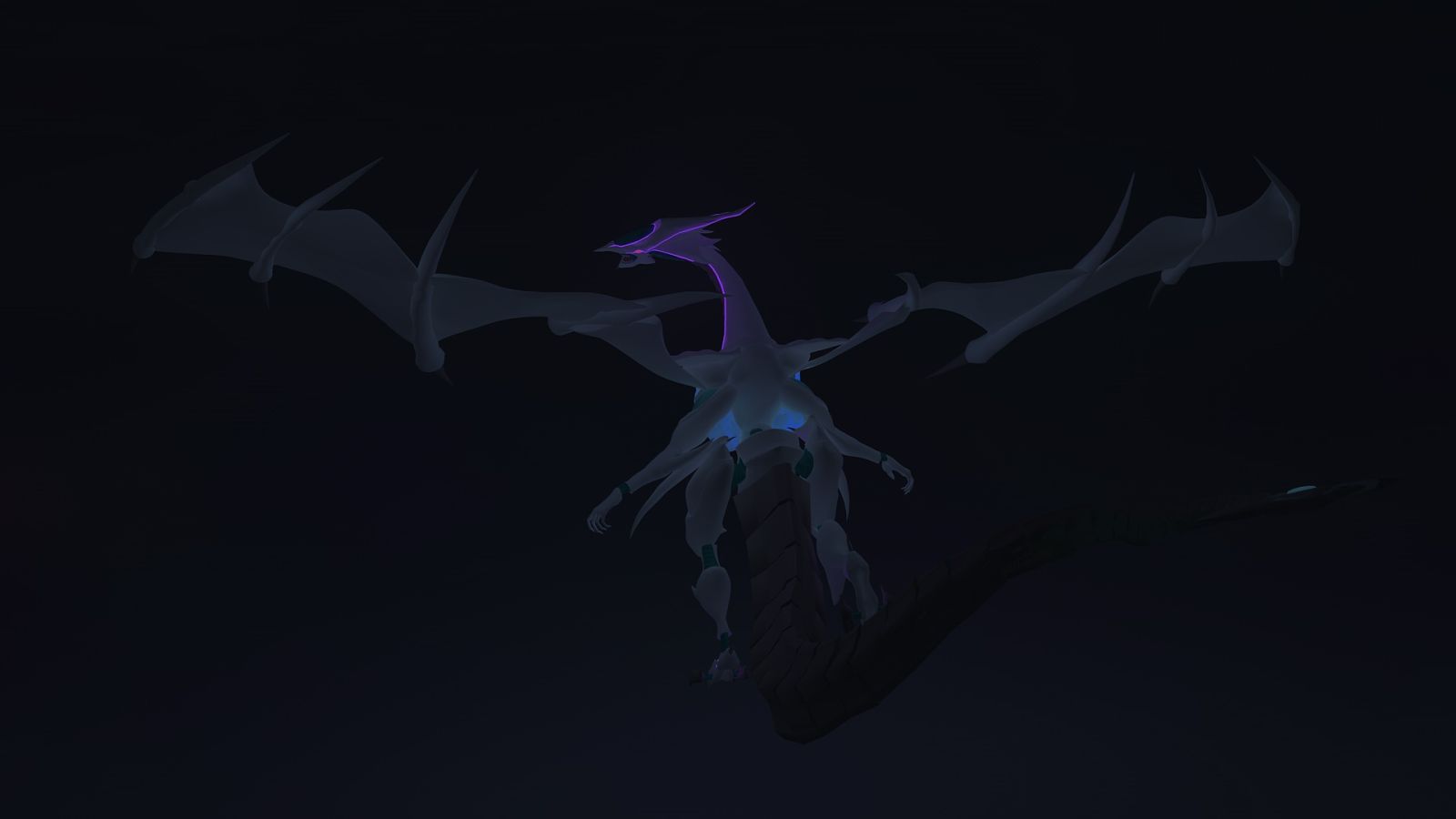 After drawing the prospective structure, I've created the model piece by piece, creating more than 250 parts. Just to assemble the tail, it was necessary to create 37 objects. I've used 11 different materials including glass, metal, concrete or translucent materials, persolized textures designed in PH and body painting. Even if it wasn't canon, I've added some glow and semi-glow materials (since it's a Cosmic Dragon) to make it glare in the dark.