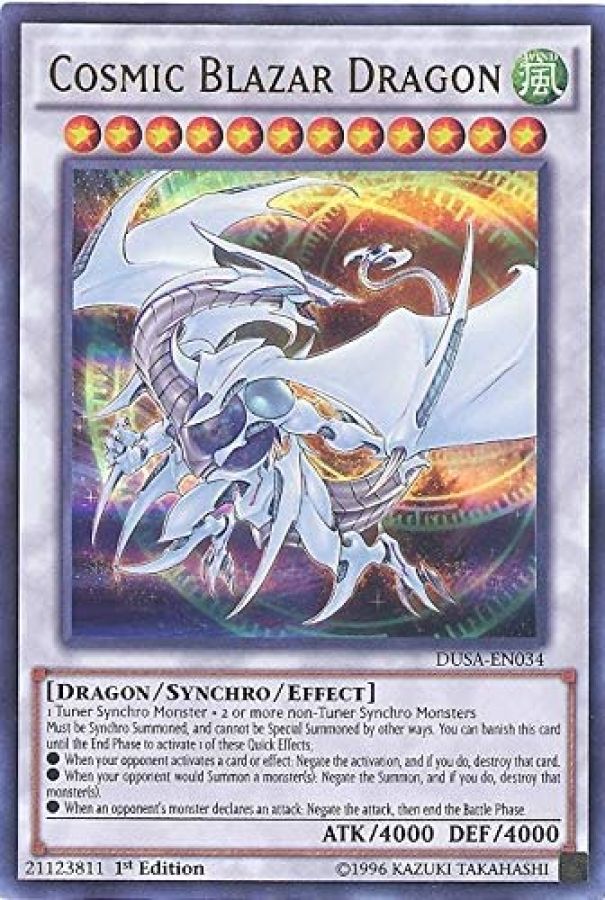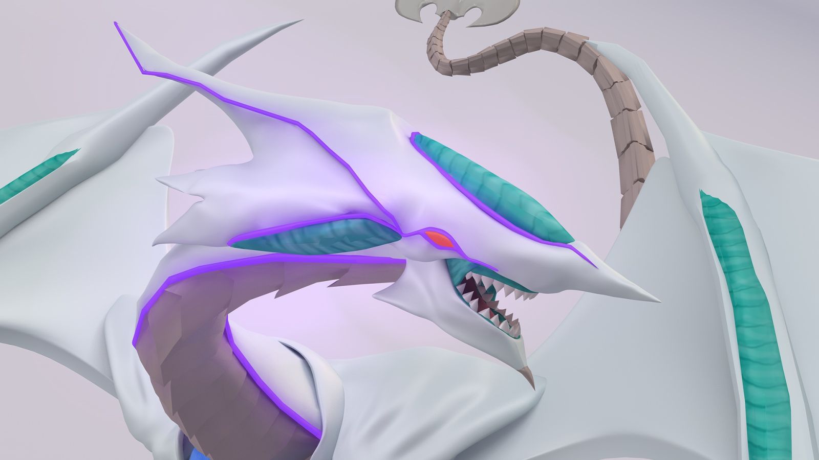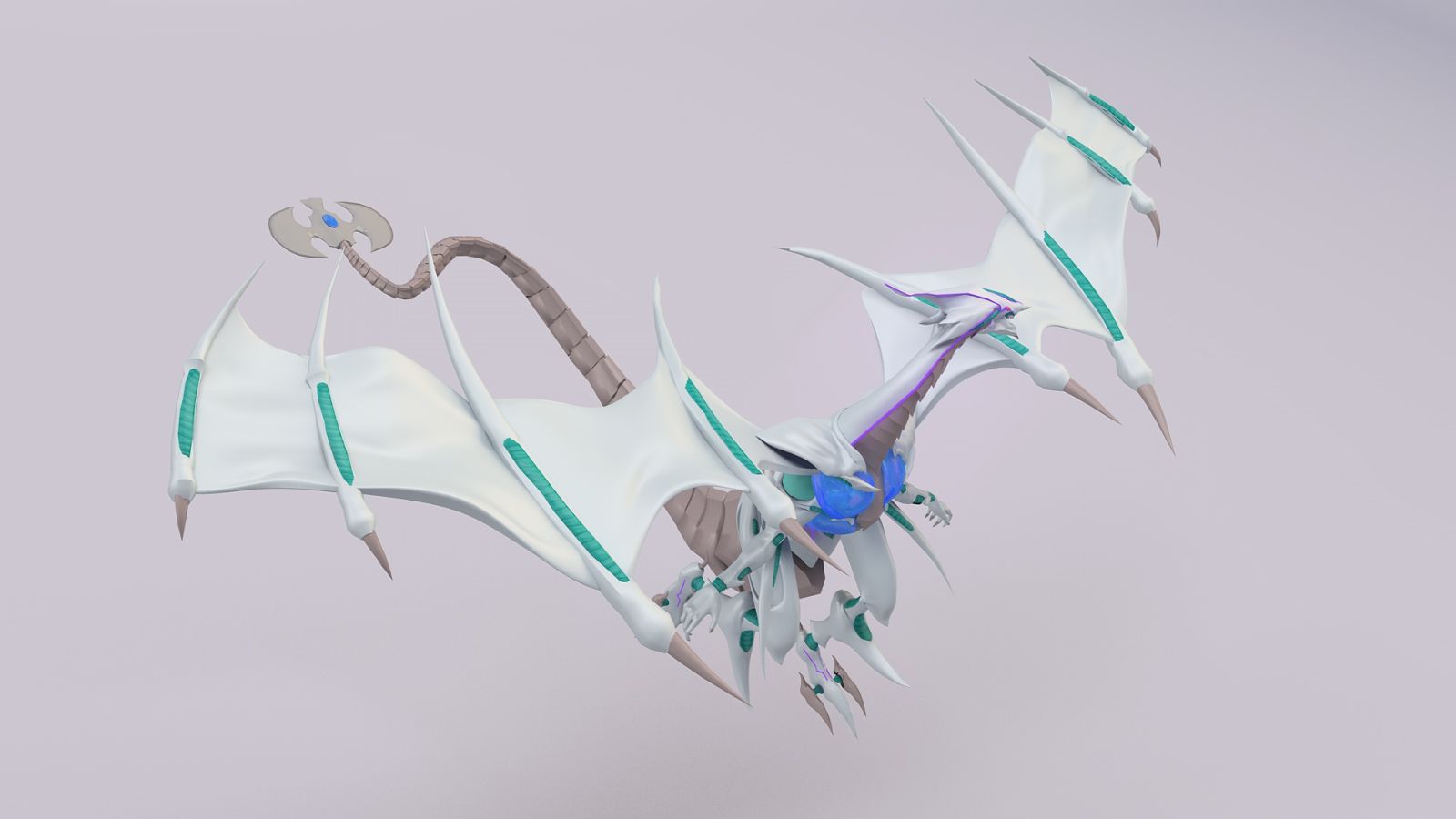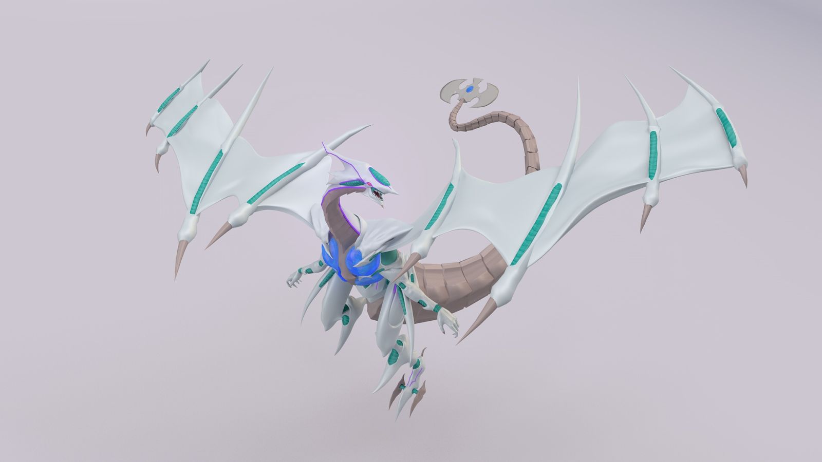The Cosmic Blazar Dragon is one of the characters from Yu-Gi-Oh! anime universe, which was really popular in the early 2000s. The most challenging part of the project was recreating the whole structure starting with just the original card's 2D flat image.