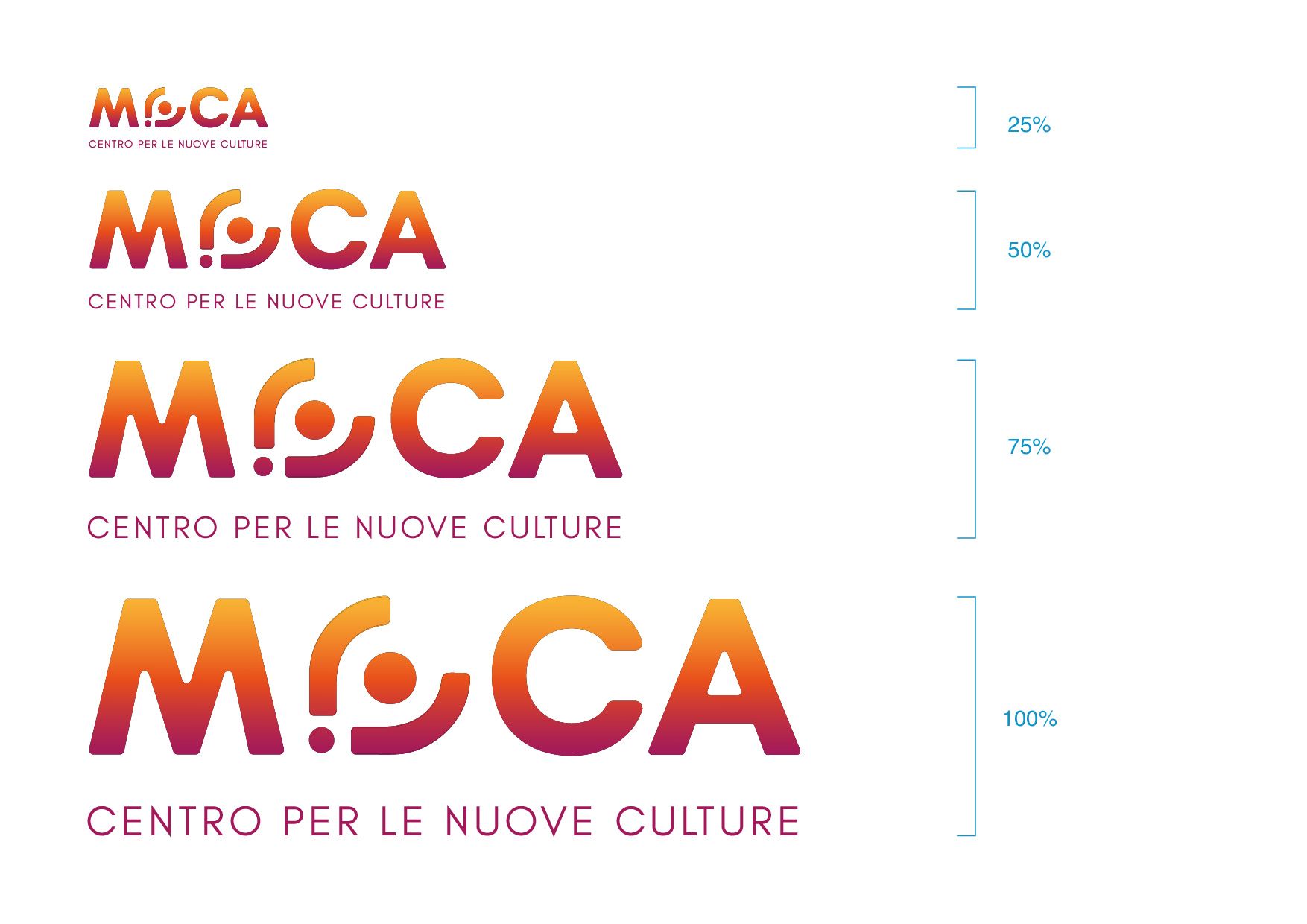 The font used in the logotype is Glacial Indifference Bold, but slightly beveled at the corners to obtain a more harmonious and complementary shape with the pictogram. Below, the pay-off Centro per le nuove culture is always written in Glacial Indifference, but in this case Regular and with a kerning of 100.