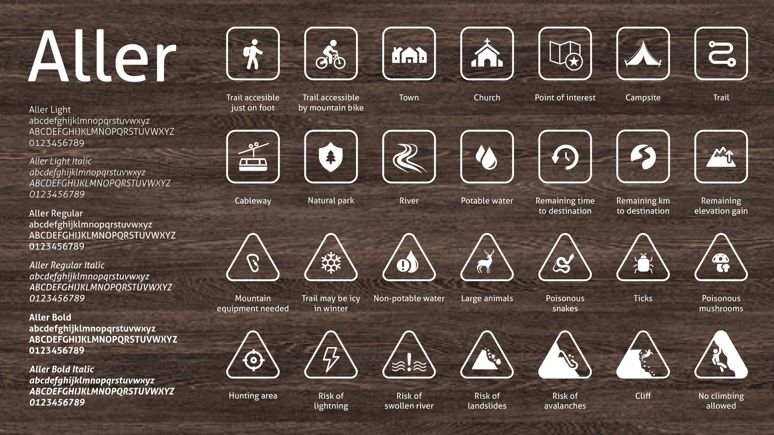 The font chosen for the logotype is Aller Bold, a sans serif font that, in its slender and soft shapes, recalls the pictogram. Its family, composed of seven different styles, can be extremely versatile, as it is easily readable both in small and large sizes. This characteristic can lead to its use in future titles, prints on gadgets or signage supports. Another important feature is that it is free-commercial use and therefore usable without copyright problems in case of use at sale.