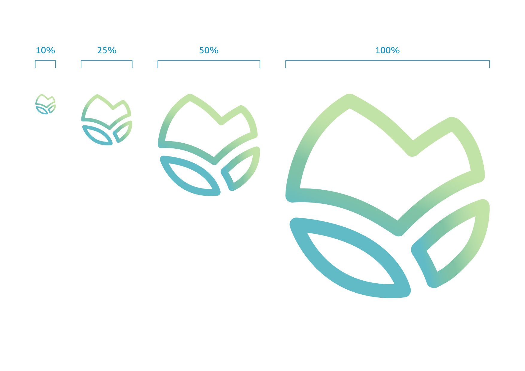 From the three shades of the pictogram’s gradient can be drawn three variations of the logo itself. These variants can be used in the future for the purpose of differentiating between routes (using each for a different route) or depending on the medium (one for signage, one for the web and one for the production of printed material).